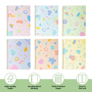 Deli Spiral Notebooks, 6 Pack Composition Books, 1-Subject, Wide Ruled Paper, 8" x 10-1/2", 70 Sheets, Assorted Pastel Colors