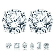JeenMata 4 Prong 2 Carat Round Shaped Moissanite Solitaire Stud Earrings in 18k White Gold Plating for Women
